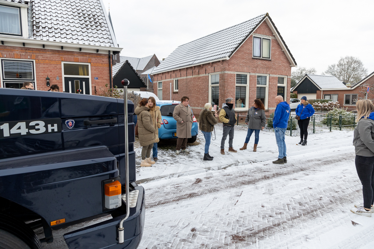 Het wegdek had een wit laagje en het was glad in de straat, Noah4All had het mediateam vooruitgestuurd om het verrassingselement vast te leggen op beeld, maar wel met de mededeling, stel je wel verdekt op.